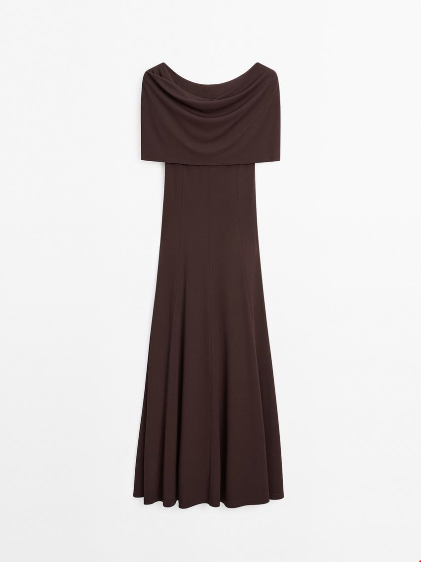 Μακρύ φόρεμα από μείγμα μαλλιού με λαιμόκοψη V Massimo Dutti