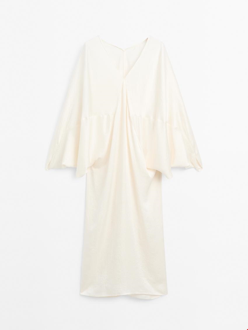 Χυτό σατινέ φόρεμα κιμονό Massimo Dutti