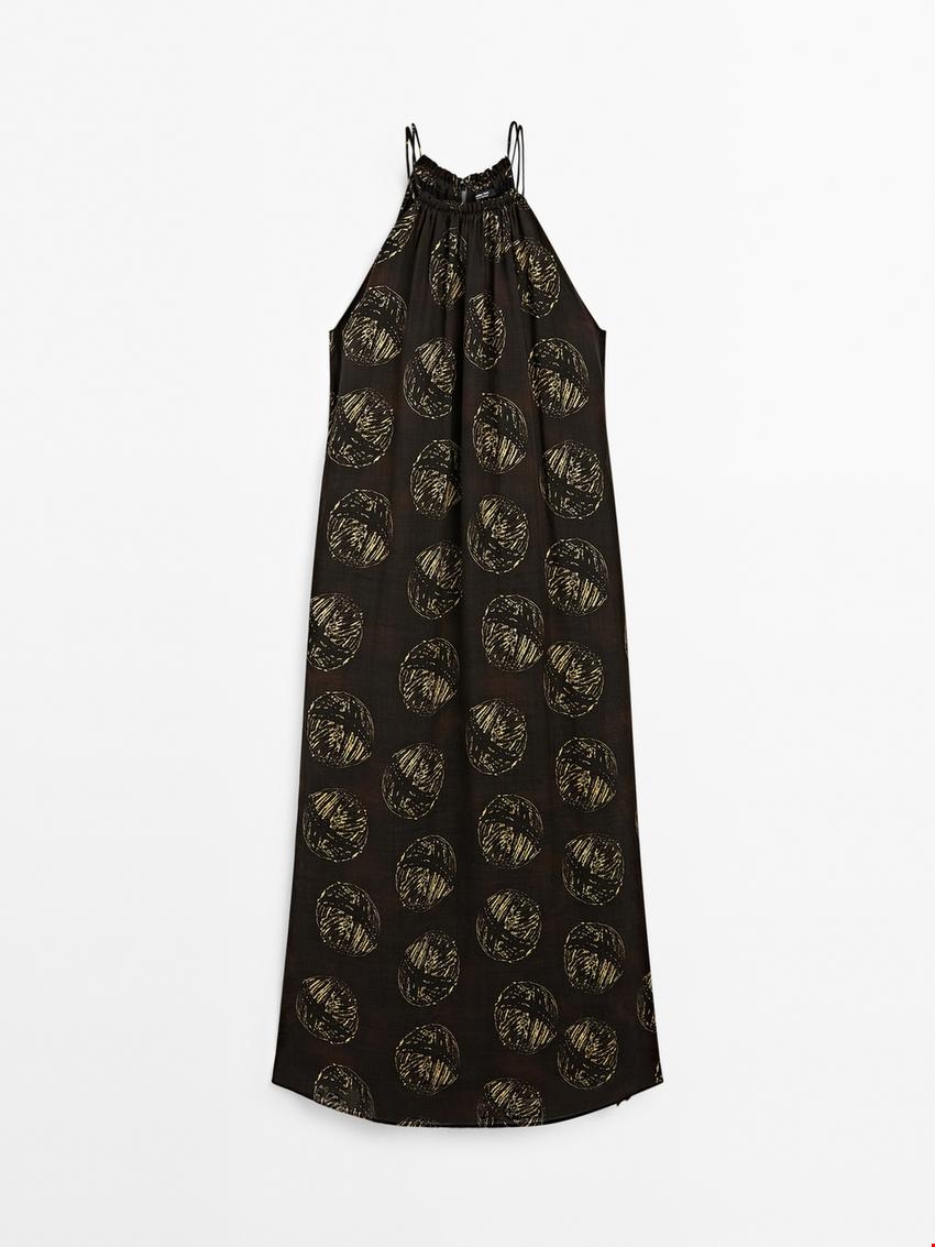 Μακρύ εμπριμέ φόρεμα με ραμί Massimo Dutti