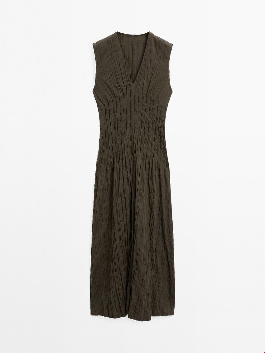 Μακρύ πλισέ φόρεμα με τσαλακωμένο σχέδιο Massimo Dutti