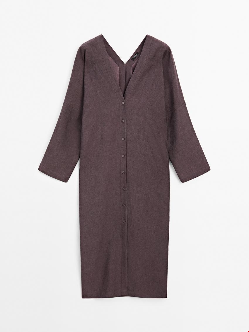Μακρύ φόρεμα τουνίκ με μανίκια Massimo Dutti