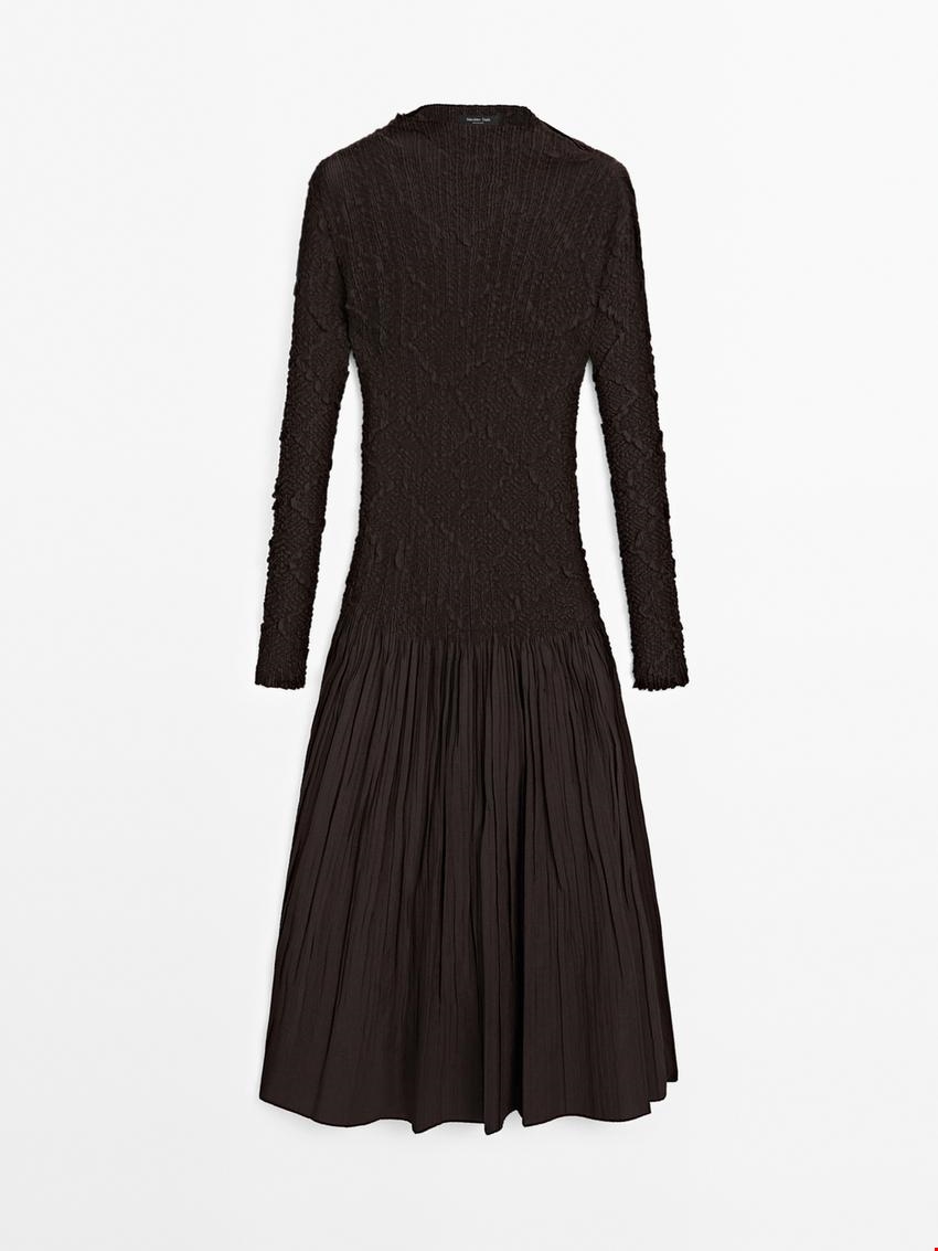 Μακρύ πλισέ stretch φόρεμα Massimo Dutti