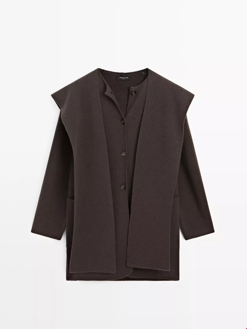 Μακρια ζακετα με ΛΕΠΤΟΜΕΡΕΙΑ κουκουλα κασκόλ Massimo Dutti