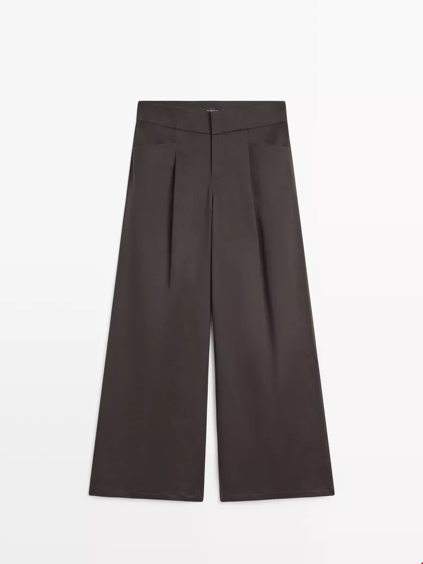 Παντελόνι με πιέτες και φαρδύ μπατζάκι Massimo Dutti