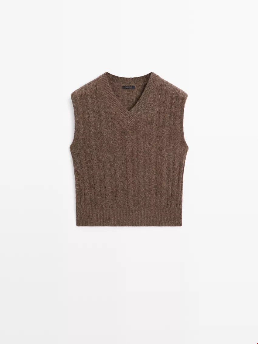 Πλεκτό γιλέκο με λαιμόκοψη V από μείγμα μαλλιού Massimo Dutti