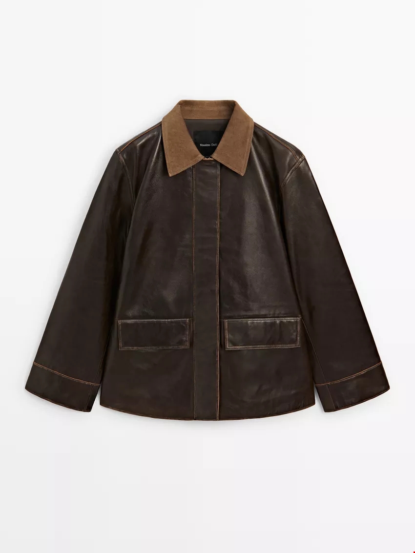 Παρκά από δέρμα νάπα με κοτλέ λεπτομέρεια Massimo Dutti