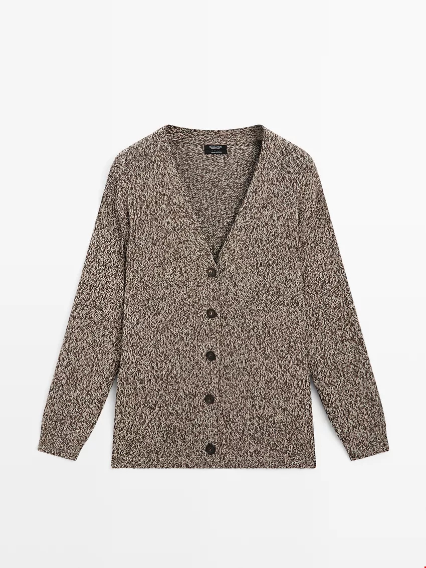 Μακριά μουλινέ ζακέτα με λαιμόκοψη V Massimo Dutti