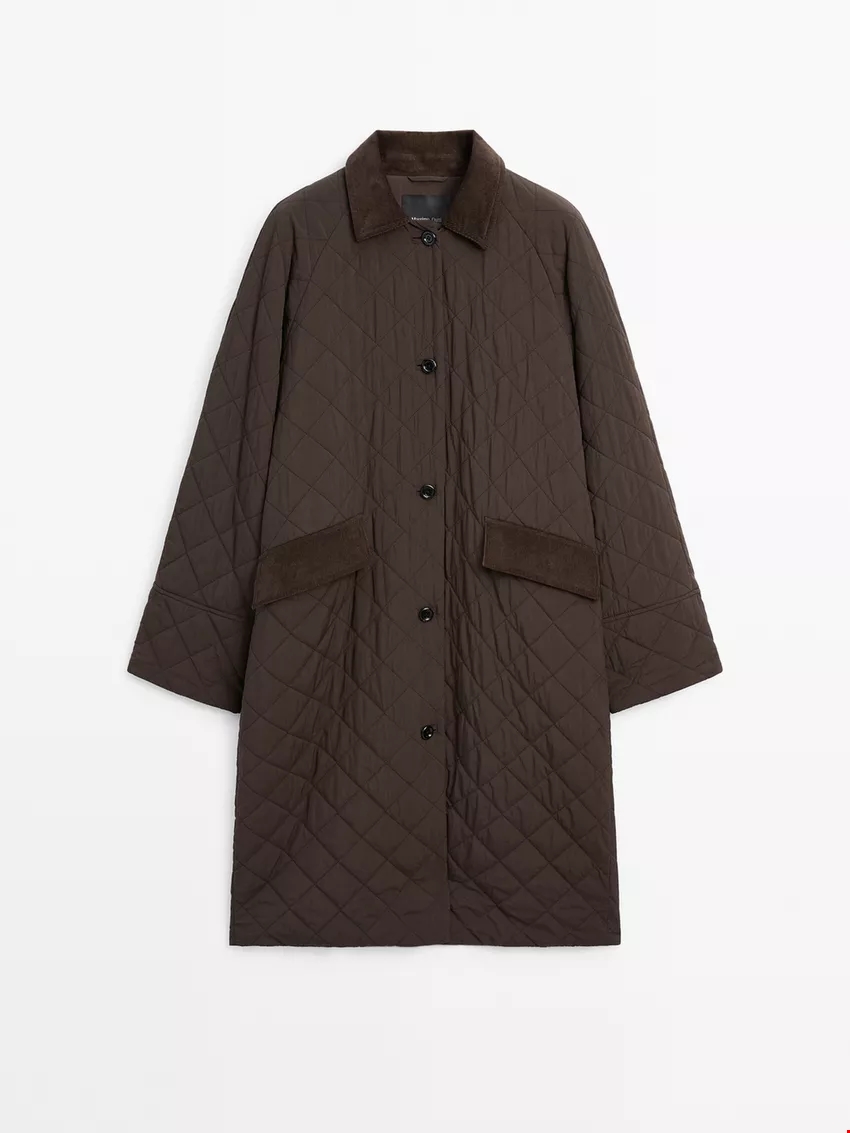 Μακρύ αδιάβροχο παλτό με κοτλέ λεπτομέρεια Massimo Dutti