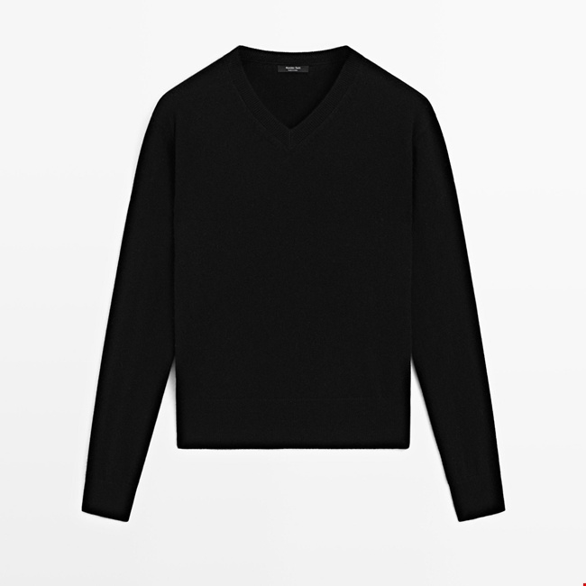 Πλεκτό πουλόβερ με λαιμόκοψη V από μείγμα μαλλιού, Massimo Dutti