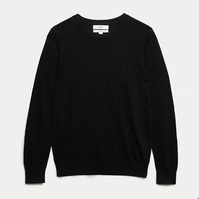 Πουλόβερ με κλειστή στρογγυλή λαιμόκοψη από 100% μαλλί merino, Marks&Spencer