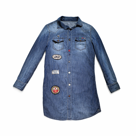 Denim πουκάμισο με τα χαρακτηριστικά υφασμάτινα patches του label