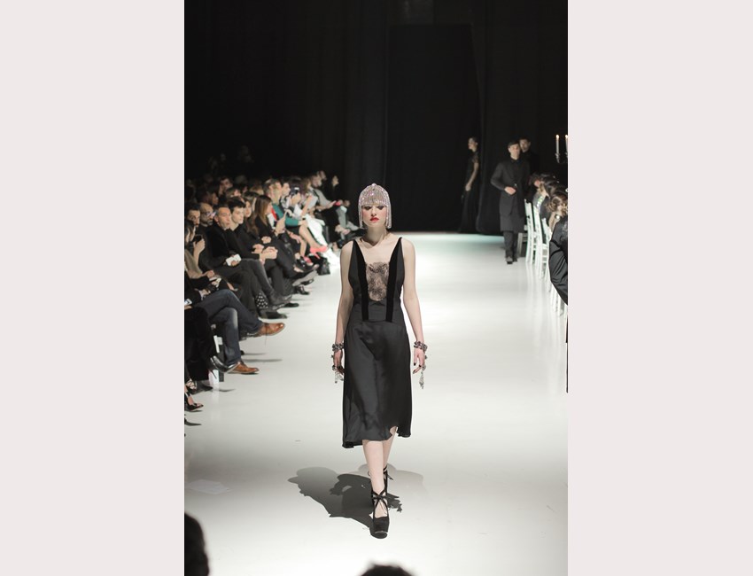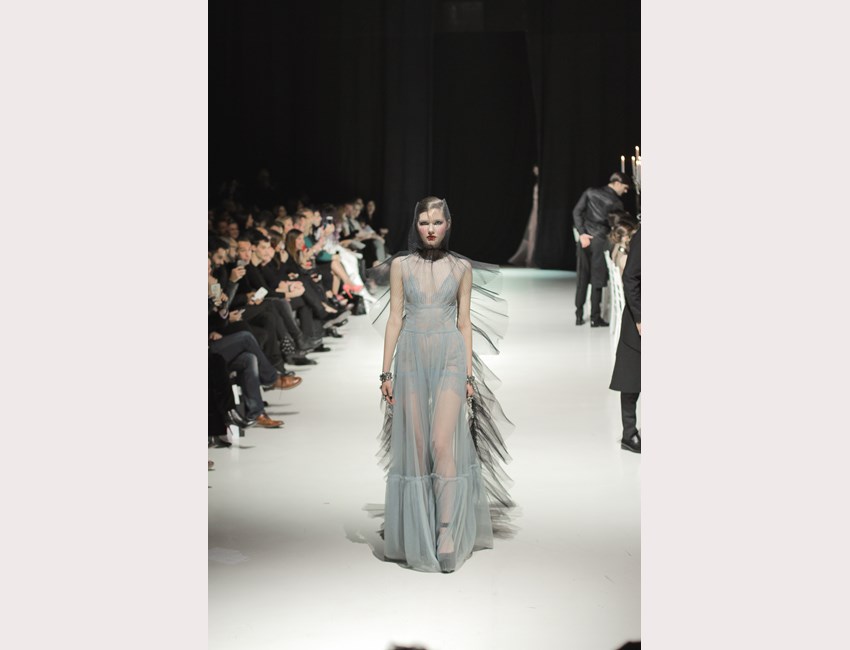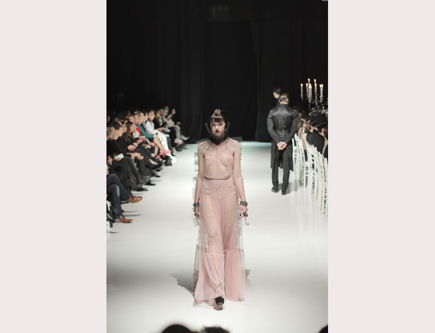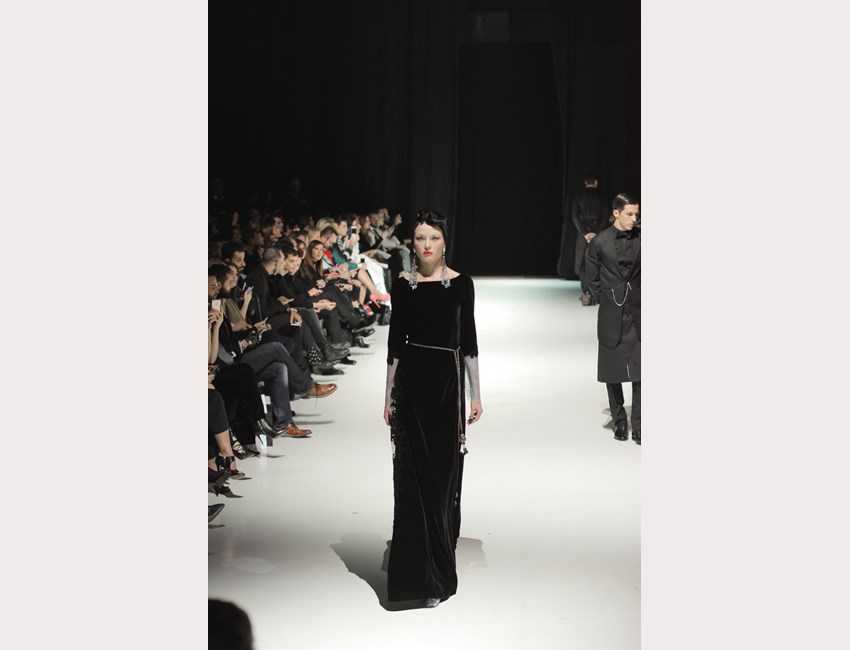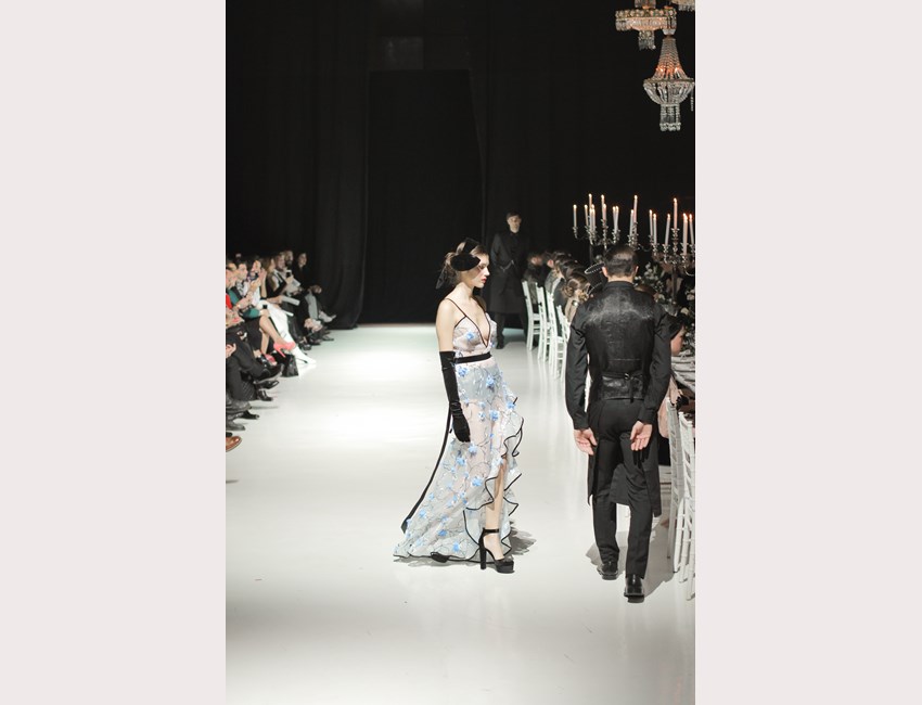 Αφότου κάθισαν όλοι στις θέσεις τους, τα κηροπήγια άναψαν από τους "μπάτλερ"- extras το φώτα έγιναν ψυχρά και εκτυφλωτικά, η μουσική του Rubi Rubi Rubi άρχισε να παίζει και, μπροστά στα μάτια μας, εξελίχθηκε το δείπνο που ο σχεδιαστής οραματίστηκε, με πρωταγωνιστές 49 διαφορετικούς ήρωες των βιβλίων της συγγραφέα- φαινόμενο. Κάθε μοντέλο, ολοκληρώνοντας την διαδρομή του στο catwalk έπαιρνε θέση στο τραπέζι, επισημαίνοντας στο κοινό ότι, στην Couture Affair, ο κάθε χαρακτήρας είναι πρωταγωνιστής και ύποπτος ταυτόχρονα.