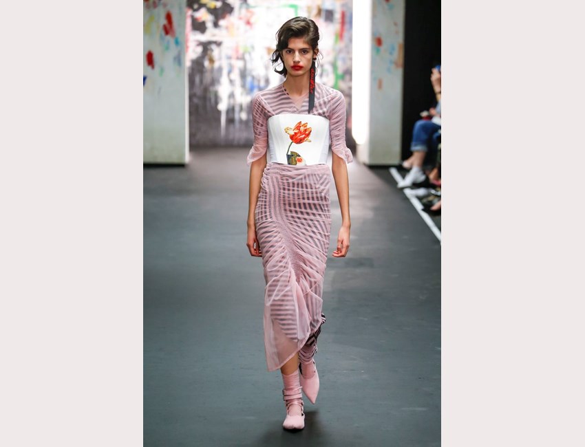 Λίγες μέρες πριν το show του, ο Christopher Kane έλεγε στο studio του ότι η φετινή του συλλογή δεν είχε ως επίκεντρο έναν συγκεκριμένο τύπο γυναίκας, αλλά τον πειραματισμό με υφές και σχήματα. Το αποτέλεσμα ήταν δημιουργίες που έβγαζαν ένα edgy glamour με industrial αναφορές, παντρεύοντας το μπλέ με το δαμασκινί, τον ταφτά με τα 3D λουλούδια σε πλισέ φούστες, φορέματα από σιφόν, metallics και ογκώδεις βαμβακερές τσέπες.