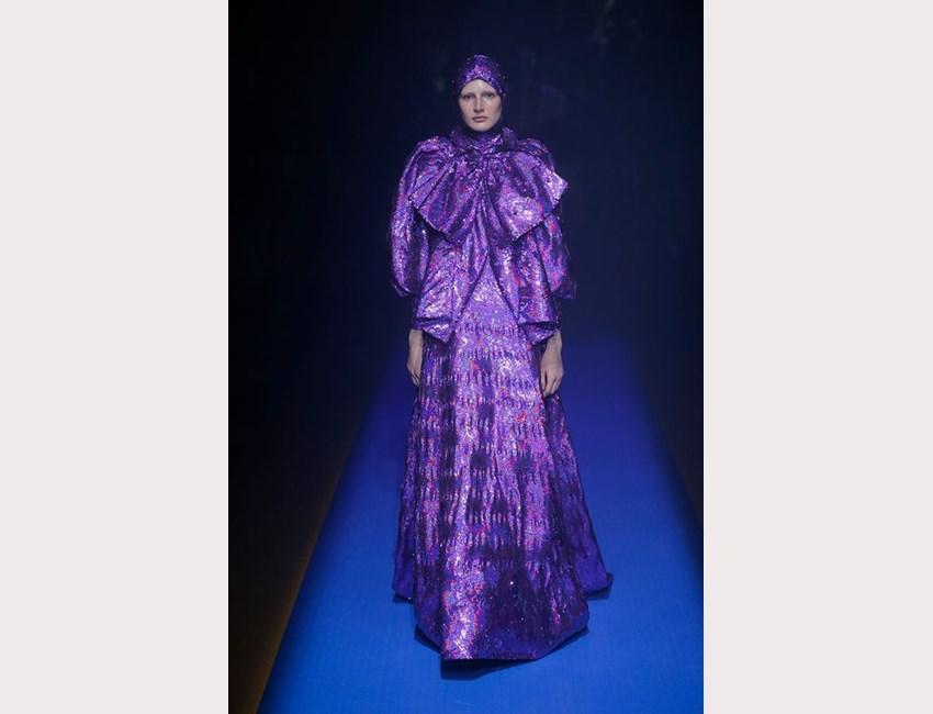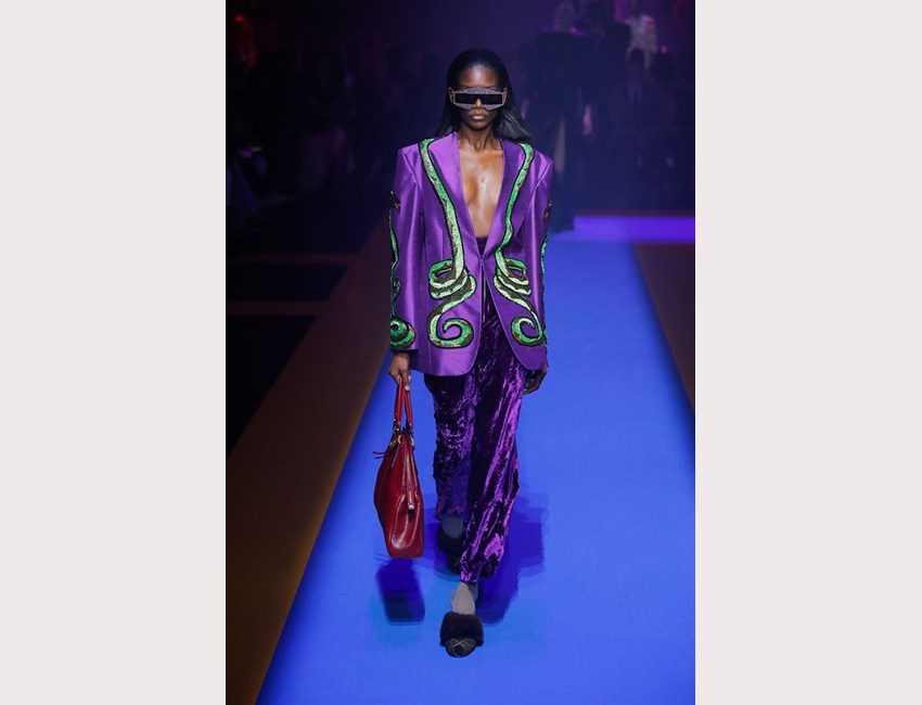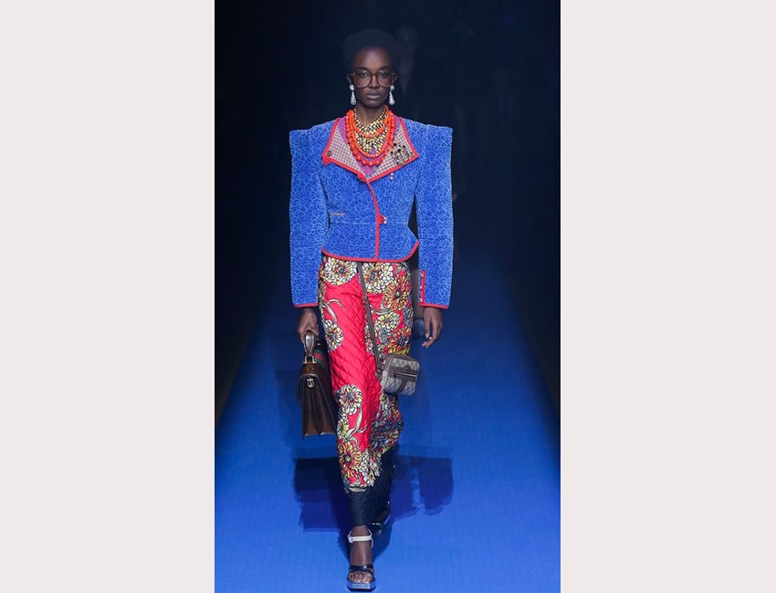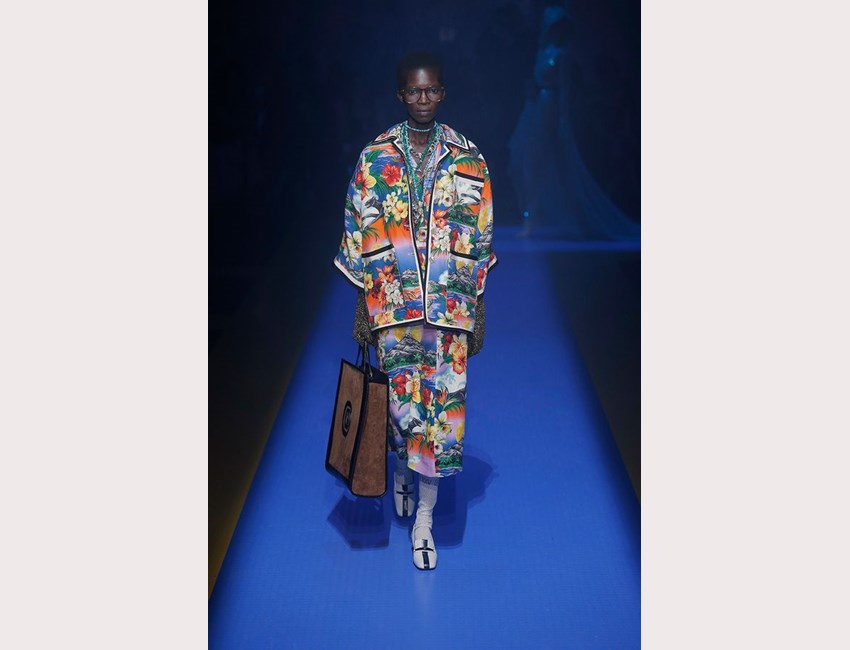 Οι αναφορές ήταν φυσικά αμέτρητες- με τα σκηνικά να περιλαμβάνουν αρχαιοελληνικά και ρωμαϊκά αγάλματα και ομοιώματα αιγυπτιακών θεοτήτων- αλλά την τιμητική τους είχαν τo '80s glam, το βρετανικό τουίντ, ο Elton John (με τον οποίο ο Michele είναι φίλος), οι τονισμένοι ώμοι και φυσικά τα περίτεχνα prints και florals που είναι σήμα-κατατεθέν του οίκου.