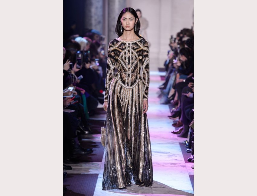 Από την άλλη, ο Elie Saab έκανε αυτό που κάνει πάντα- παρουσίασε υπέροχα, πολυτελή, παραμυθένια φορέματα που σίγουρα θα δούμε στα red carpet της χρονιάς. Φέτος όμως, η συλλογή του ήταν ιδιαίτερα ξεχωριστή, γιατί πηγή έμπνευσής του ήταν τα '20s. O σχεδιαστής αναζήτησε το ρομαντισμό που άλλοτε έβρισκε στα παραμύθια, στις παλ αποχρώσεις, τα φτερά, τα κεντήματα και τη γραμμικότητα των art deco prints που μεσουρανούσαν τη δεκαετία του '20- και δεν παρέλειψε να αποτυπώσει τον ερωτισμό της εποχής μέσα από τις δημιουργίες του. Τα beauty looks των μοντέλων έκαναν τα φορέματα απόλυτα σύγχρονα, δίνοντας (κάπως απότομα) το στίγμα της μετάβασης στο σήμερα.