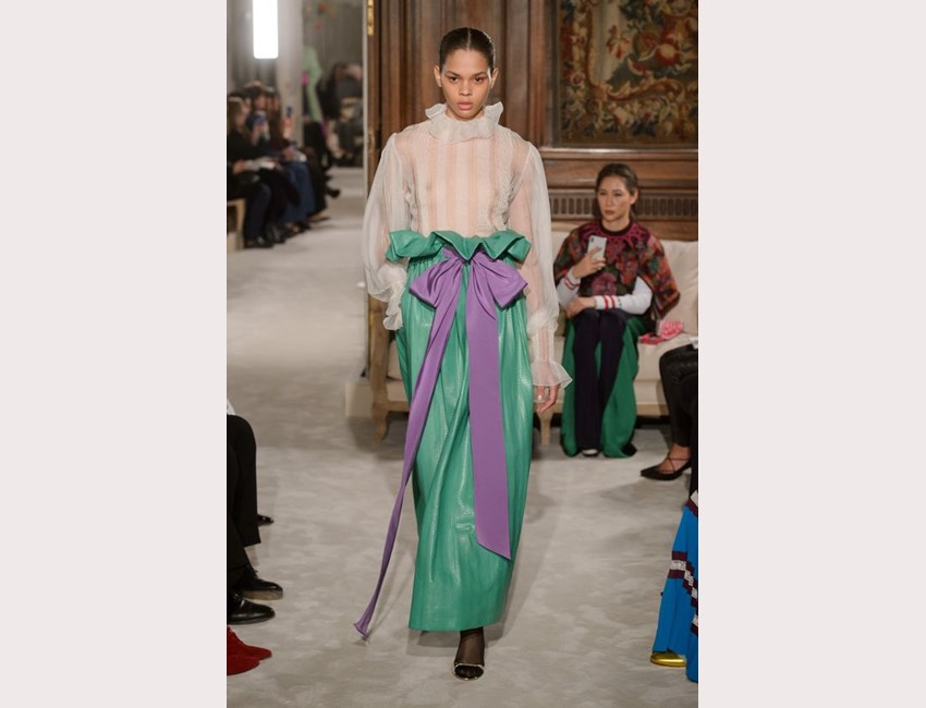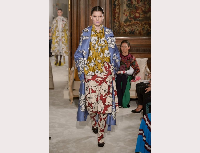 Συνθέτοντας τις επιρροές του από τα περιοδικά των '50s ως τα '80s, o Piccioli γεφύρωσε το χάσμα του casual και του θεατρικού ρούχου με μεγάλη άνεση και χάρη- το πρώτο look του show ήταν ένα dramatic μεταξωτό lime μαντό πάνω από ένα παντελόνι ανδρικού τύπου και ένα λευκό tank top. Η συλλογή κινήθηκε σε αυτό το κλίμα, με πολλά, ευφάνταστα χρώματα, πολλές στρώσεις περίτεχνου υφάσματος, καπέλα από φτερά- τα οποία δεν έδειχναν απρόσιτα, αλλά αντίθετα, σου έφτιαχναν τη διάθεση- και αρκετές δόσεις menswear, στην πιο ποπ εκδοχή του. Όλα αυτά, παραμένοντας ασύγκριτα chic.