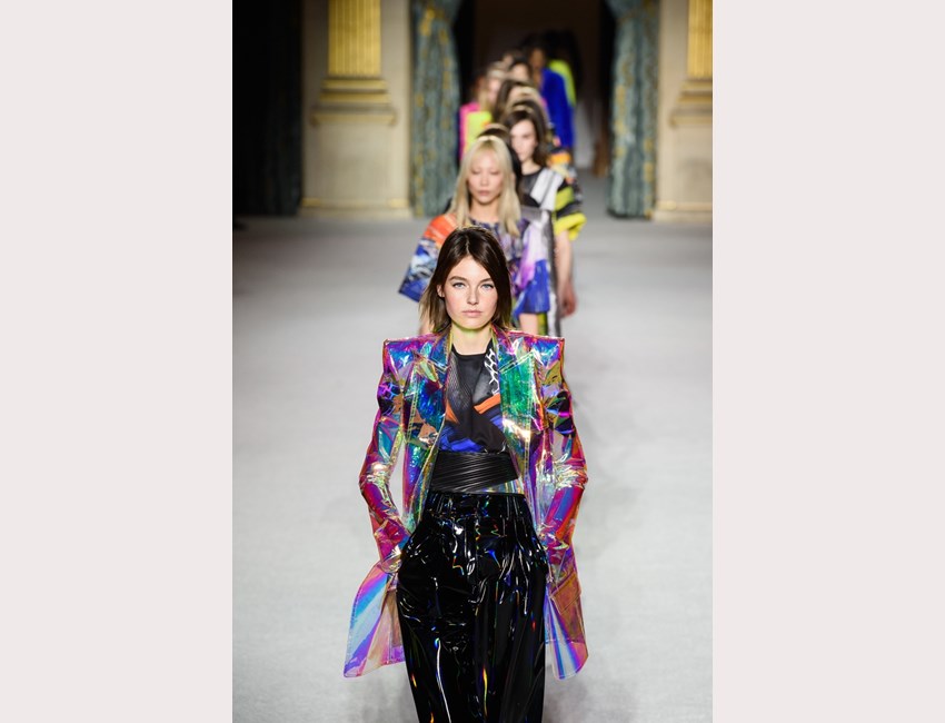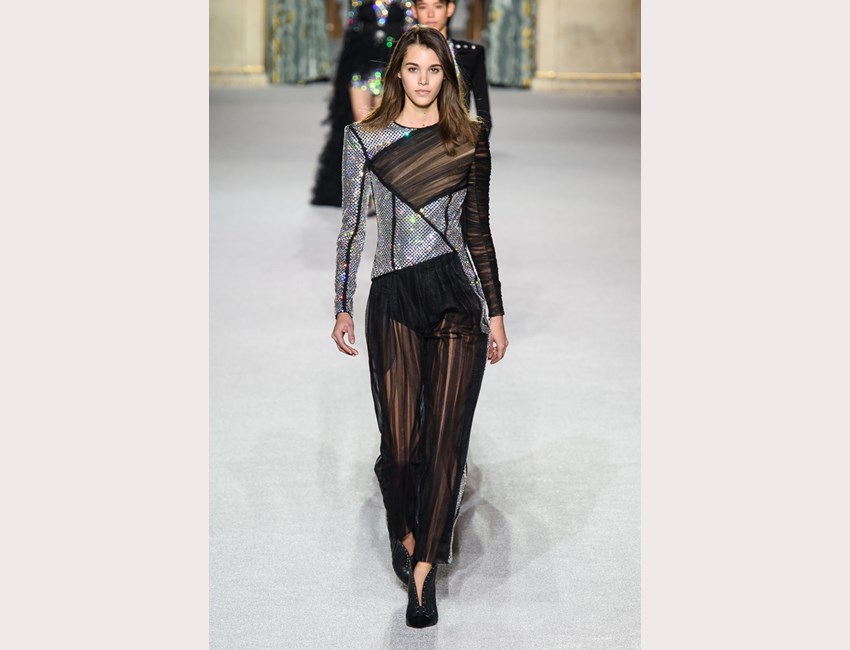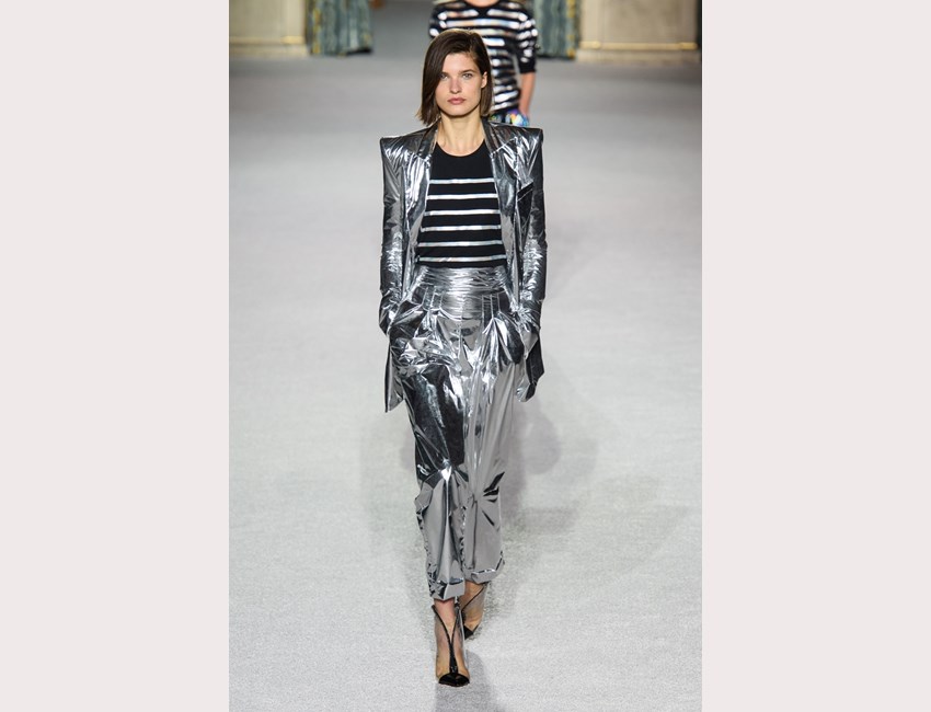 Από τα 80s μπορεί να πει κανείς ότι ήταν εμπνευσμένη και η συλλογή που μόλις παρουσίασε ο Olivier Rousteing για τον οίκο Balmain, αν και μονάχα ελαφρά. Ο γυναικείος δυναμισμός και ο androgynous αισθησιασμός της δεκαετίας, τηλεμεταφέρονται στον επόμενο αιώνα: μιλάμε μάλλον για τα 2080s.