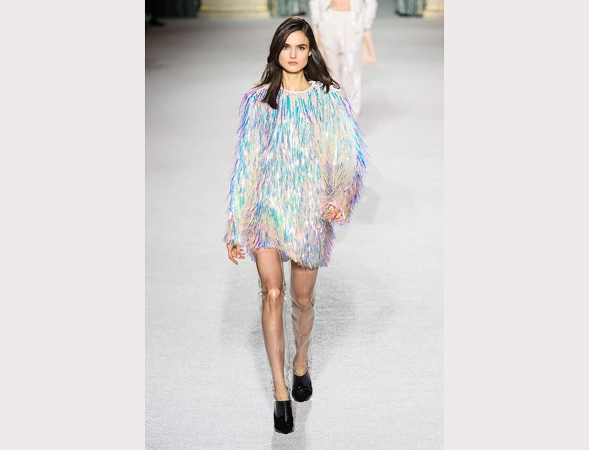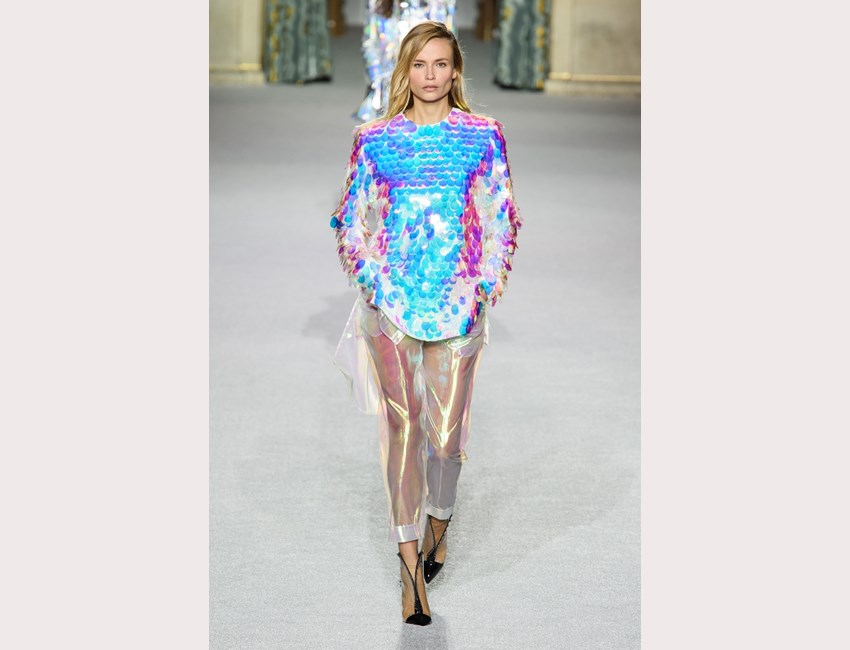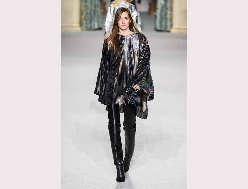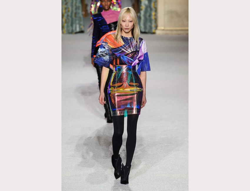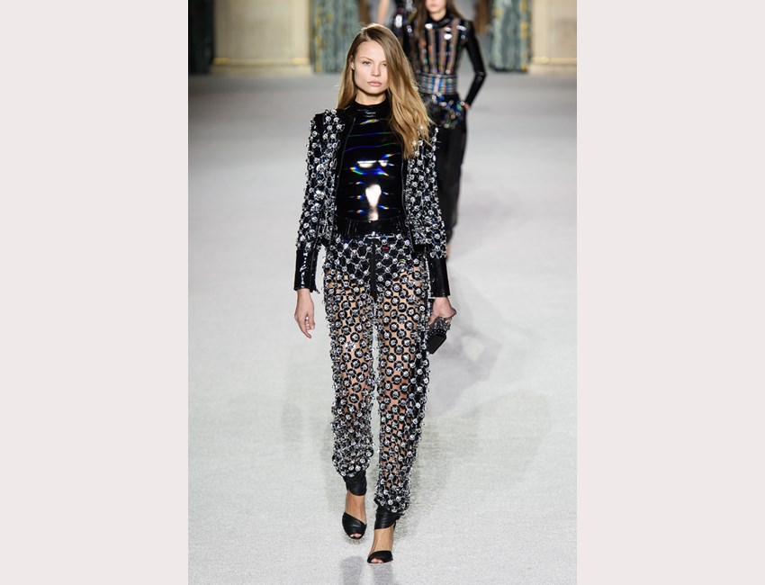 Και πώς μοιάζει αυτή η εποχή; Είναι γεμάτη λαμπερά λαμέ υφάσματα, ολογραφικές παγιέτες, pvc αξεσουάρ και πανωφόρια αλλά και λάτεξ σε φαρδιές, πτυχωτές δημιουργίες. Άνετα πτυχωτά παντελόνια με ψηλόμεση εφαρμογή, tailored καπιτονέ σακάκια, cosy πουλόβερ με υπερμεγέθεις παγιέτες, ημιδιάφανα jackets και καμπαρντίνες, πολλά κοστούμια σε κάθε ύφασμα (αρκεί να λάμπει!) ντύνουν την σέξι, δυναμική, πολυάσχολη γυναίκα του μέλλοντος. Όσο για το βράδυ; Περνάει καλύτερα μέσα σε μίνι φορέματα από πλισέ patchwork, bodycon γραμμές, neon τούλι αλλά και κρύσταλλα!