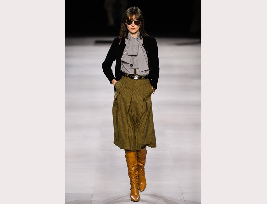 Πολλοί είπαν ότι για πρώτη φορά, μετά από χρόνια, μια συλλογή του Slimane είχε όντως θέμα. Και αυτό είναι αλήθεια. Για πρώτη φορά ξέφυγε από τα total black, από την απόλυτα rock αισθητική του και μας έδειξε μια άλλη πτυχή του σχεδιαστικού του ταλέντου, μέσα από τα καρό, τα bomber jackets, τα pussy bows και τα μεταξωτά φορέματα.