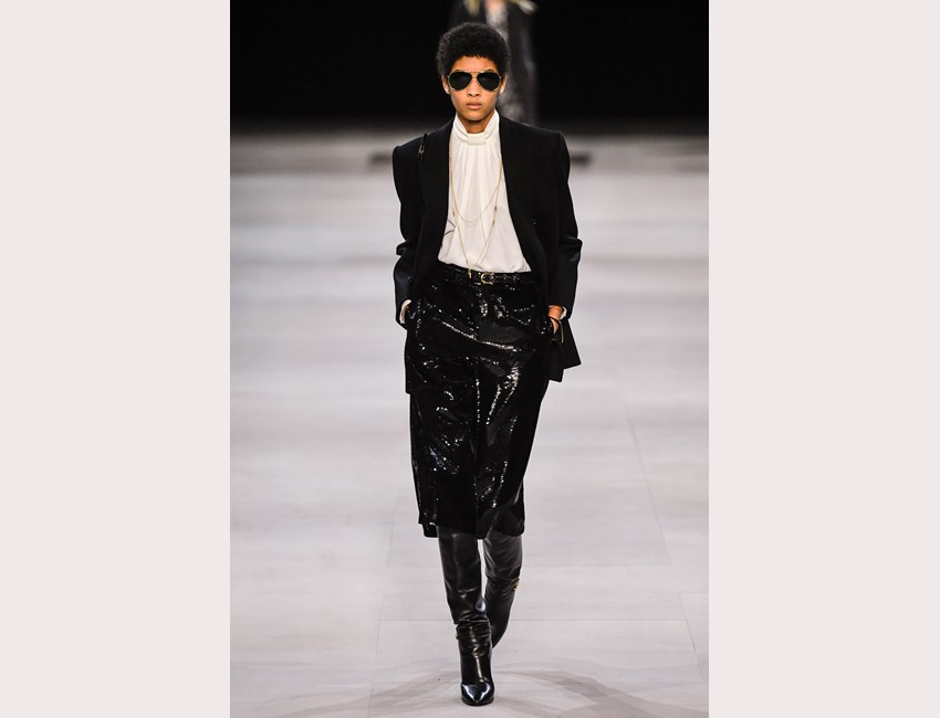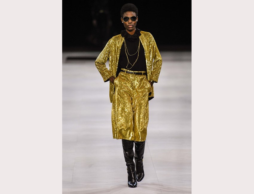 Δεν παρέλειψε βέβαια να κλείσει τη συλλογή με κομμάτια που θυμίζουν έντονα τον Slimane που γνωρίσαμε και αγαπήσαμε. Lurex, παγέτες, στενές ανδρόγυνες σιλουέτες έδειξαν μια πιο glamorous πλευρά της Celine. Μετά από αυτό, μάλλον κανείς δεν πρόκειται να αμφισβητήσει ξανά τον Hedi Slimane. Ανυπομονούμε για την επόμενη συλλογή του.