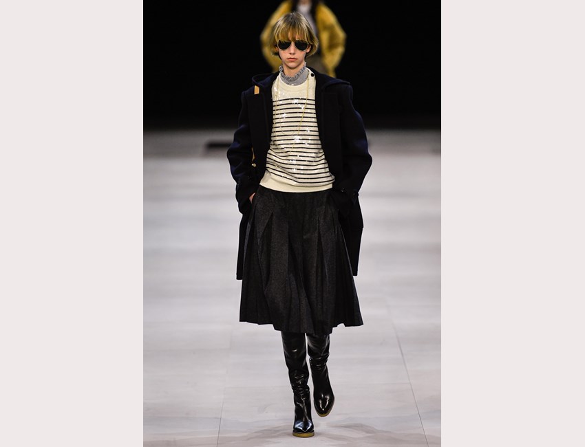 Έτσι πριν από μερικές ώρες παρουσίασε τη νέα του συλλογή για τον ερχόμενο χειμώνα, η οποία από το πρώτο κιόλας look φάνηκε ότι έχει πολλά να πει. Ladylike στοιχεία, που μας άρεσε έτσι κι αλλιώς να βλέπουμε από τη Celine, parisian chic διάθεση, σύγχρονη μόδα, συνδυασμένα όλα με λίγο από 1970s και 1980s αλλά και με την signature αισθητική του Slimane. Φορέματα που παρέπεμπαν στη γαλλική εξοχή, κάπες με boho επιρροές αλλά και μεγάλα, statement πανωφόρια, ξεχώρισαν από τη συλλογή. Κάπως έτσι ξεδιπλώθηκε το όραμα που είχε για τον οίκο που μόλις ανέλαβε. Κράτησε τη σοφιστικέ θηλυκότητα που αναζητούν οι fans της Philo, αλλά της έδωσε κάτι από τον δικό του χαρακτήρα, στην πιο εξελιγμένη μορφή του. Εδώ και χρόνια άλλωστε είναι ξεκάθαρο το τι αρέσει στον Slimane,φρόντισε να το κάνει σαφές από την εποχή του Dior Homme.