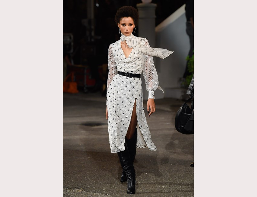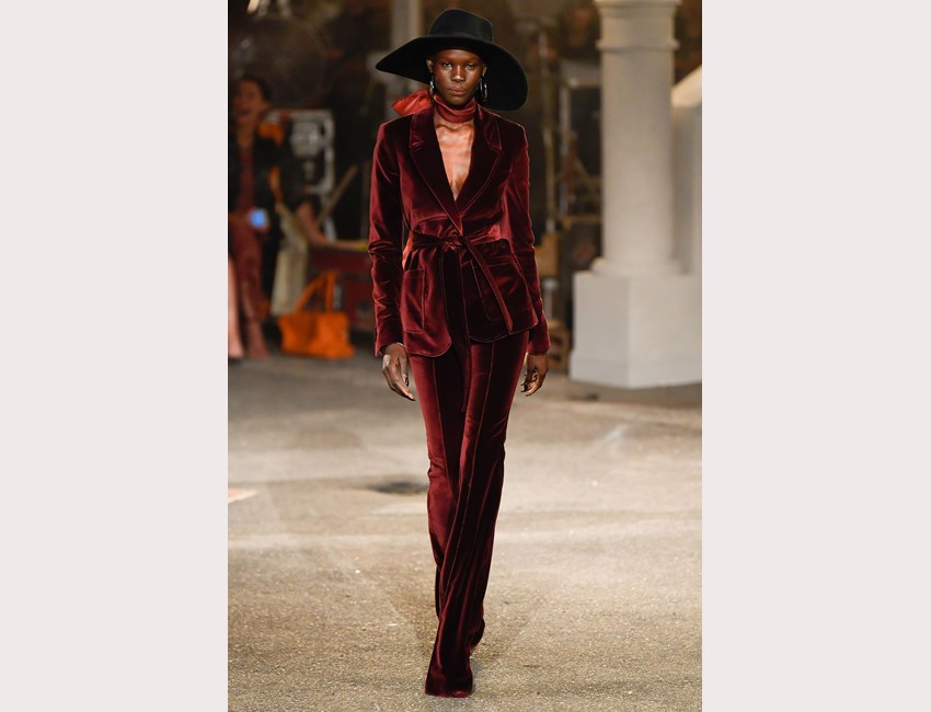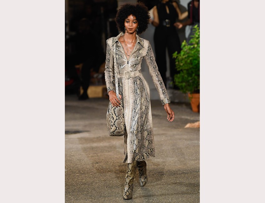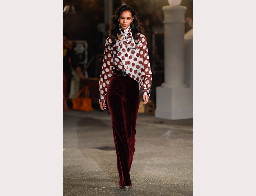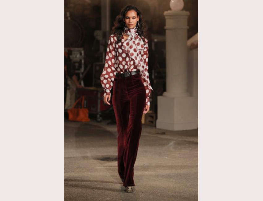 Το καθοριστικό power dressing των '70s και ‘80s επαναπροσδιορίζεται με μία έντονη και μοντέρνα οπτική. Το sartorial tailoring και το scarf dressing ξεχωρίζουν μέσα από σοφιστικέ αστερισμούς και κομψά animal μοτίβα. Το Signature houndstooth καρό και τα polka dot prints σε απρόσμενες αναλογίες προσδίδουν μία μοναδική ερμηνεία στις maxi φούστες και στα wrap φορέματα. Ζεστοί μπορντό τόνοι συνδυασμένοι με μεταλλικά χρώματα και μονοχρωματικές παλέτες δίνουν μία φρέσκια διάσταση. Στη συλλογή εντάσσονται πολυτελή υφάσματα, όπως κρεμ δερμάτινα και faux γούνες, πλούσια βελούδα αλλά και premium ποιότητας denim.