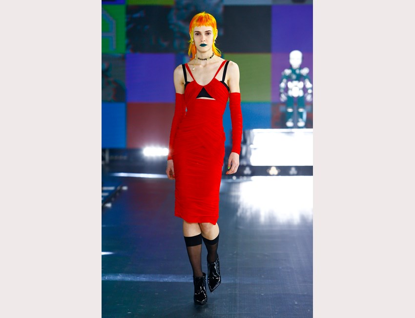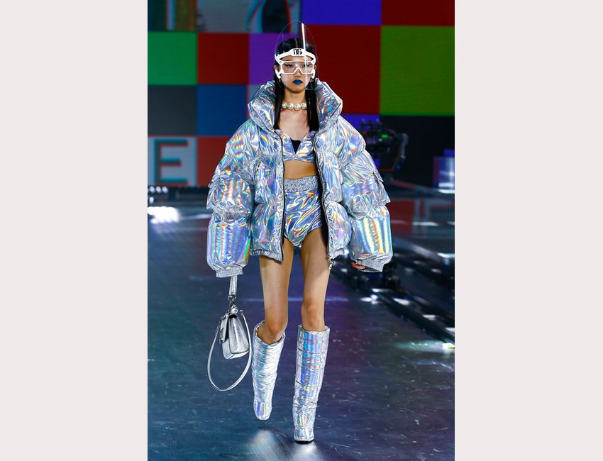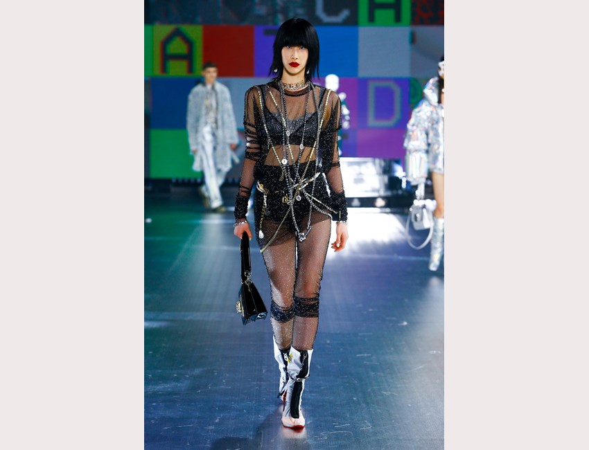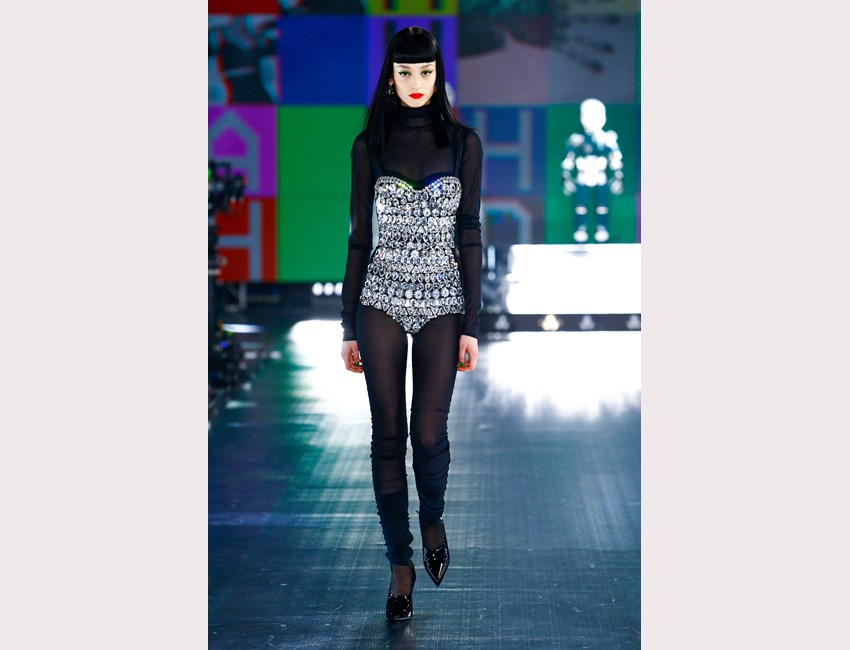 "Next Chapter" oνομάζεται η συλλογή των Dolce & Gabbana για την επόμενη σεζόν και αυτό ακριβώς επιχειρεί να κάνει: να δείξει το επόμενο κεφάλαιο, το μέλλον της μόδας. Οι δημιουργίες αποτελούν μια σπουδή στη σχέση της γυναικείας γκαρνταρόμπας με τις νέες τεχνολογίες, γι’ αυτό και μαζί με τα μοντέλα στο catwalk περπάτησαν –ή μάλλον, κύλησαν- ρομπότ, ενώ το όλο εγχείρημα πραγματοποιήθηκε σε συνεργασία με το Ιταλικό Ινστιτούτο Τεχνολογίας.