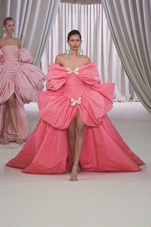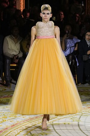Ο Giambattista Valli αγαπά να σχεδιάζει δημιουργίες για το κόκκινο χαλί και αυτή η συλλογή του είναι τρανή απόδειξη. Πούπουλα, όγκοι από τούλι, αστραφτερά catsuits και μεγάλα φορέματα με φιόγκους πρόκειται να κάνει κάθε γυναίκα που τα φορά να ονειρεύεται τη στιγμή που κρατήσει το χρυσό αγαλματίδιο σε μία τελετή Oscar.