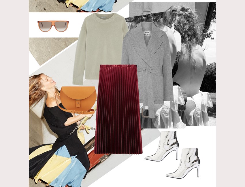 Παλτό Acne Studios, NET-A-PORTER.COM. Πουλόβερ Vince, NET-A-PORTER.COM. Πλισέ φούστα ZARA. Τσάντα Pb 0110, MATCHESFASHION.COM. Ankle boots Topshop, TOPSHOP.COM. Γυαλιά ηλίου Celine, MATCHESFASHION.COM.