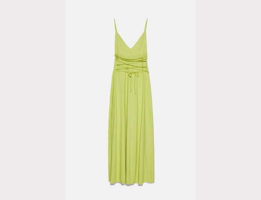 Φόρεμα με λεπτές τιράντες και κορδόνια στη μέση 15,99 ευρώ, zara.com