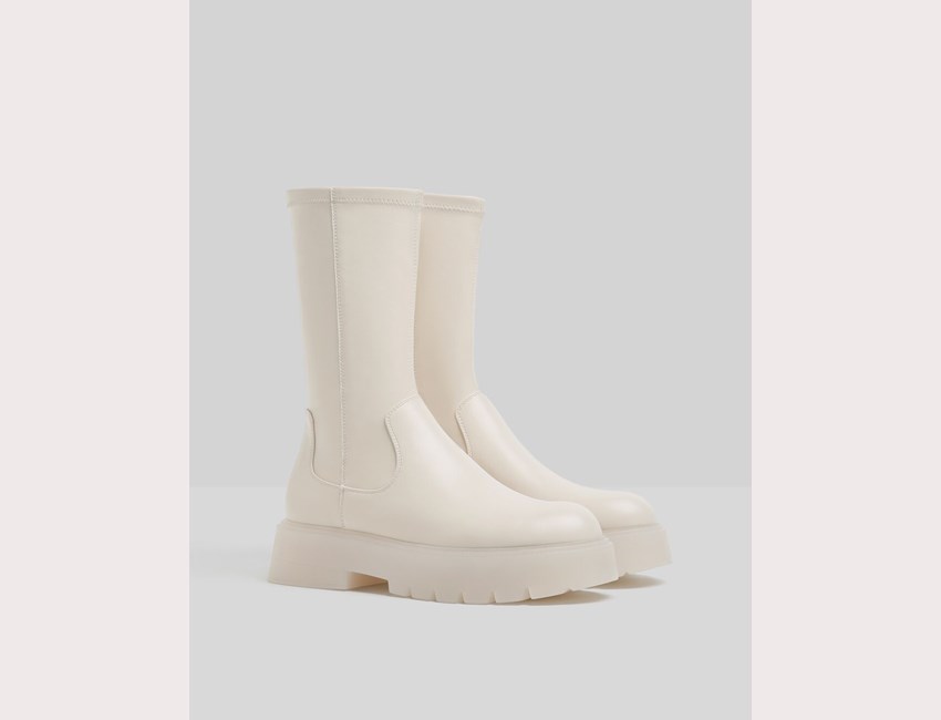 Μποτίνια εφαρμοστά με πλατφόρμα και ημιδιαφανή σόλα Bershka 39.99 €, bershka.com