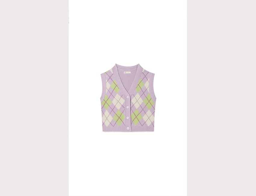 Κοντό γιλέκο με κουμπιά Stradivarius 19,99 €, stradivarius.com