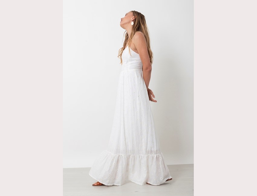 Λευκό μάξι φόρεμα με λεπτές τιράντες, Helmi