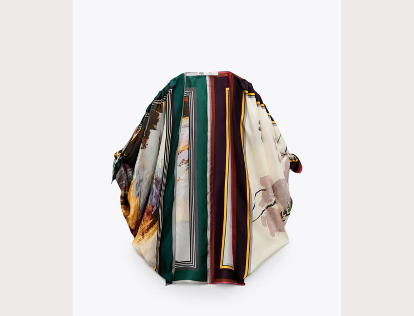 Το fashion brand δημιούργησε μία limited edition συλλογή με τίτλο Scarf Collection, τα κομμάτια της οποίας μοιάζουν με έργα τέχνης. Όπως μαρτυρά και ο τίτλος της, η συλλογή αφορά τα μαντήλια, όχι όμως με την αναμενόμενη προσέγγιση. Το Zara έχει σχεδιάσει μία σειρά από ρούχα, το ύφασμα των οποίων είναι μαντήλια από 100% μετάξι. Φορέματα, κιμονό, φούστες, τουνίκ, παντελόνες και μπλούζες από μεταξωτά, εμπριμέ υφάσματα που μοιάζουν να έχουν δημιουργηθεί από έναν συνδυασμό μαντηλιών αναλαμβάνουν να ανανεώσουν το φθινοπωρινό στιλ σου με έναν πολύ ξεχωριστό και ιδιαίτερο τρόπο.