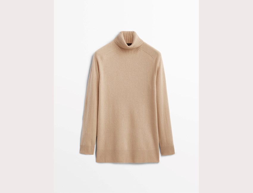 Πουλόβερ με ψηλό γιακά από μαλλί και κασμίρι Massimo Dutti