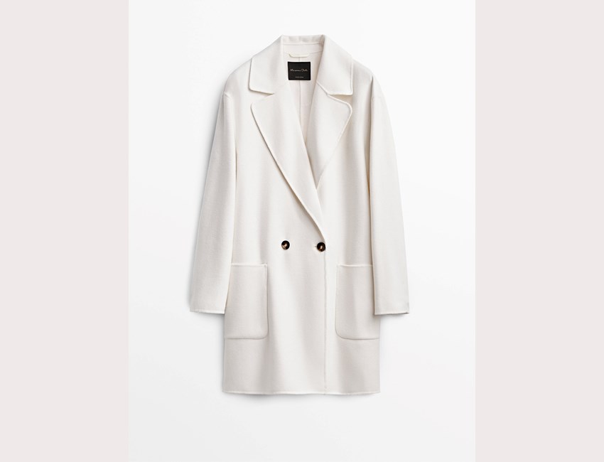 Κοντό εκρού παλτό με μαλλί Massimo Dutti