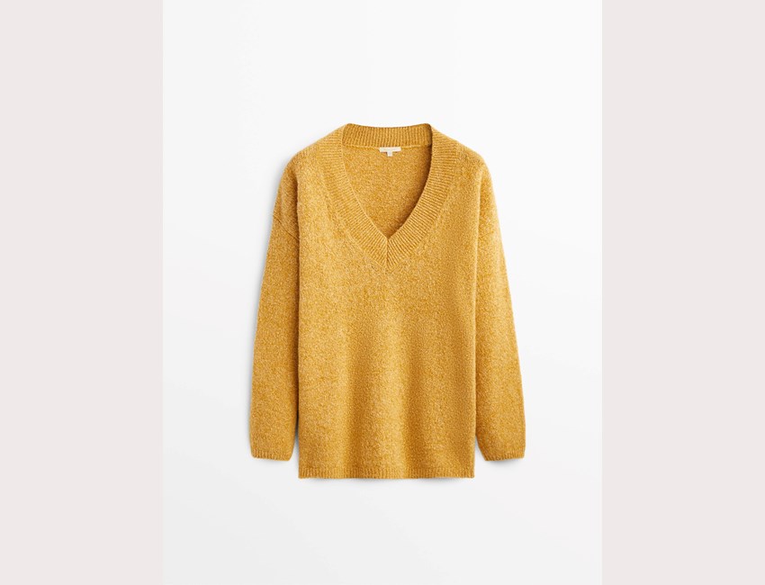 Πουλόβερ με χοντρή πλεξη και γιακά V Massimo Dutti