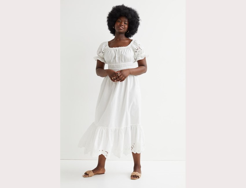 Έξωμο φόρεμα με τρυπητό κέντημα H&M