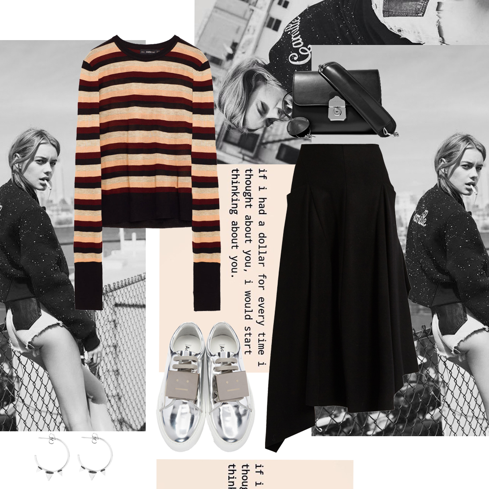 Πουλόβερ ZARA, €17.95, ZARA.COM. Φούστα Sportmax, MATCHESFASHION.COM. Tσάντα Balenciaga, BALENCIAGA BOUTIQUE. Sneakers Acne Studios, SSENSE.COM. Σκουλαρίκια Isabel Marant, NET-A-PORTER.COM. Αυτά είναι τα ωραιότερα πουλόβερ κάτω από 30 ευρώ.