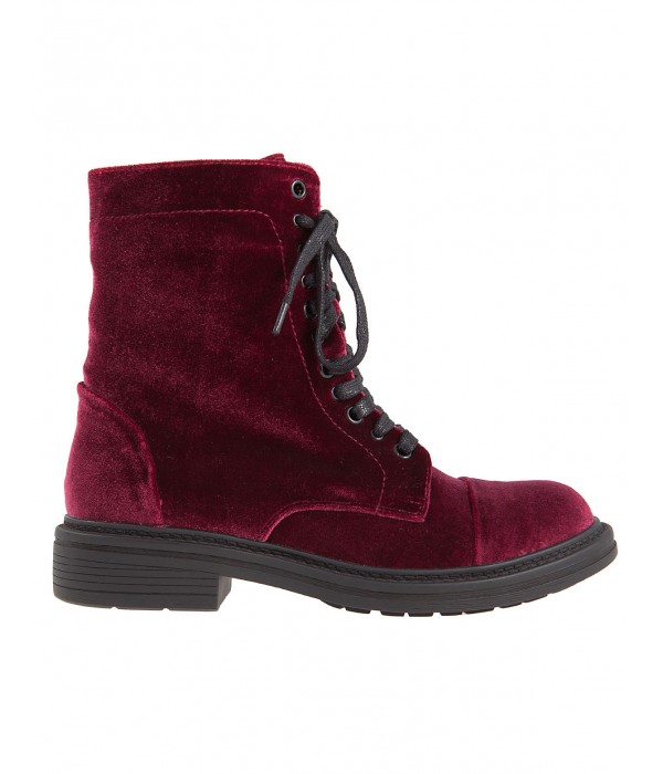 Τα έντονα χρώματα μετατρέπουν ένα από biker boot σε statement κομμάτι- εδώ σε κόκκινο του κρασιού από την Keep Fred