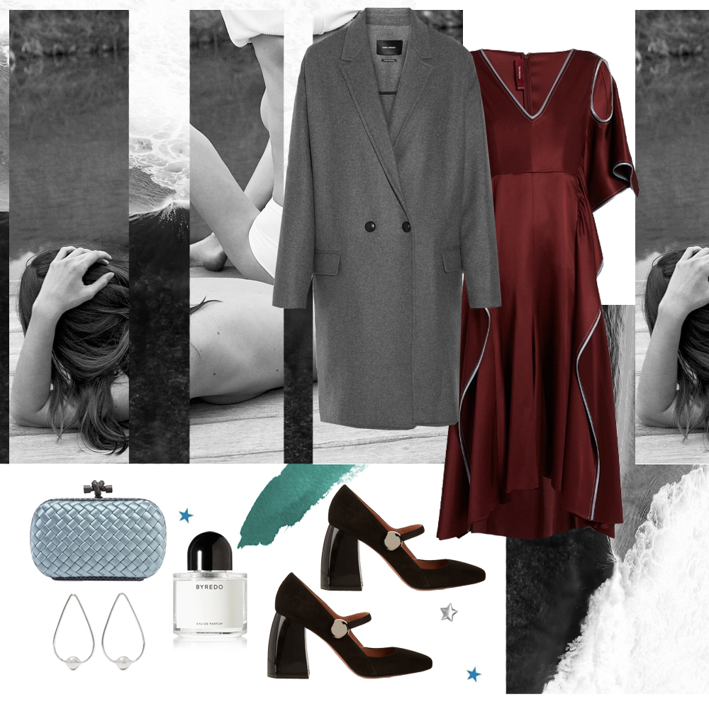 Παλτό Isabel Marant, LUISA. Φόρεμα Sies Marjan, ΜΑΤCHESFASHION.COM. Παπούτσια Sportmax, MATCHESFASHION.COM. Clutch Bottega Veneta, BOTTEGA VENETA BOUTIQUE. Σκουλαρίκια Jennifer Fisher, NET-A-PORTER.COM. Άρωμα Byredo, NET-A-PORTER.COM.