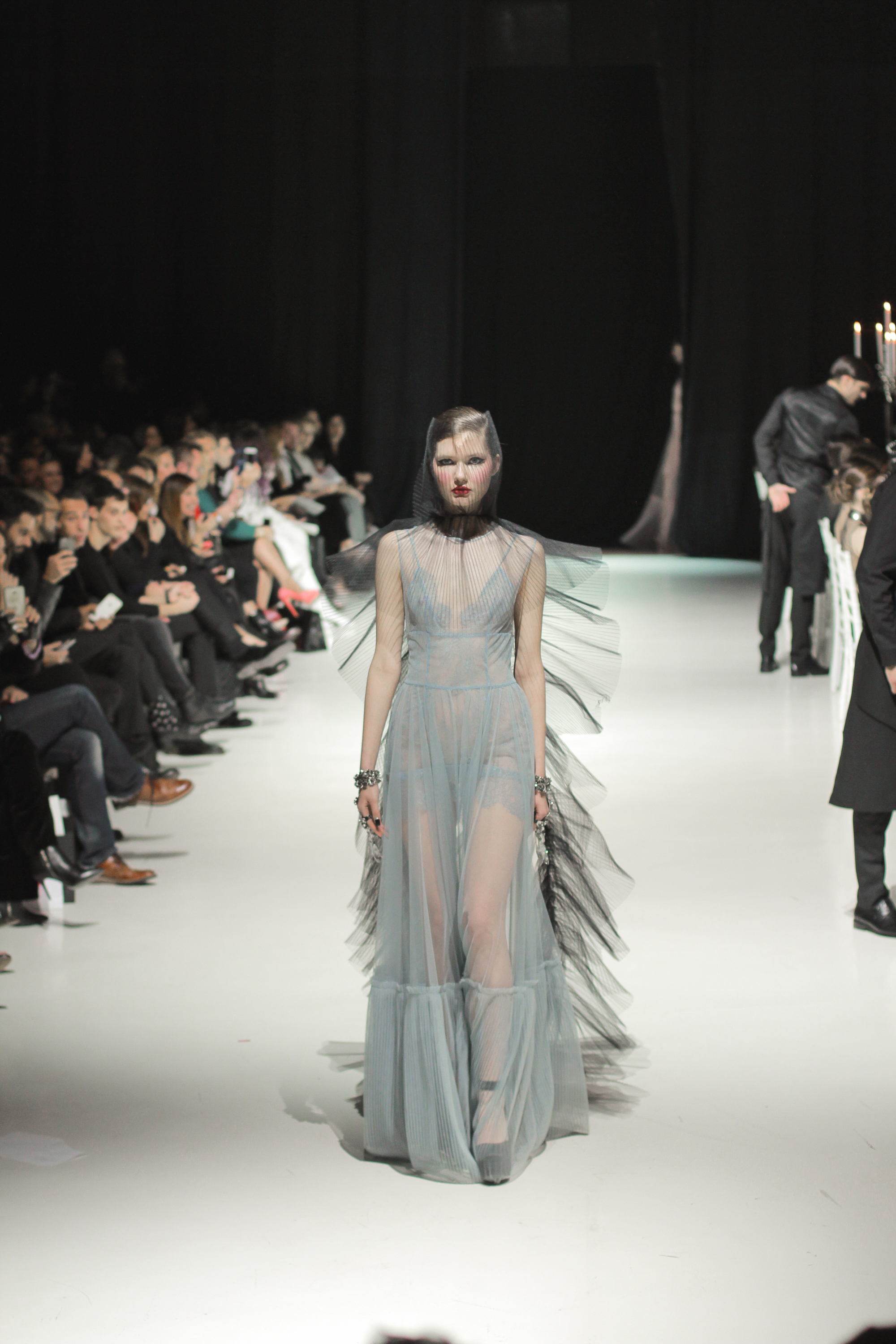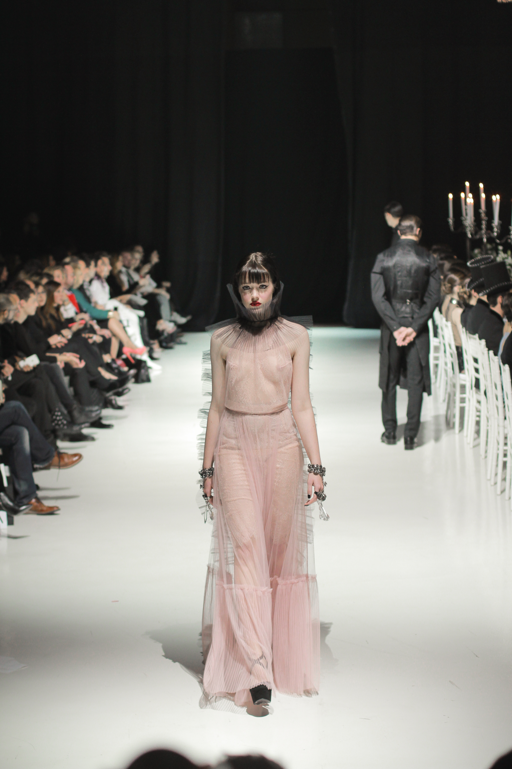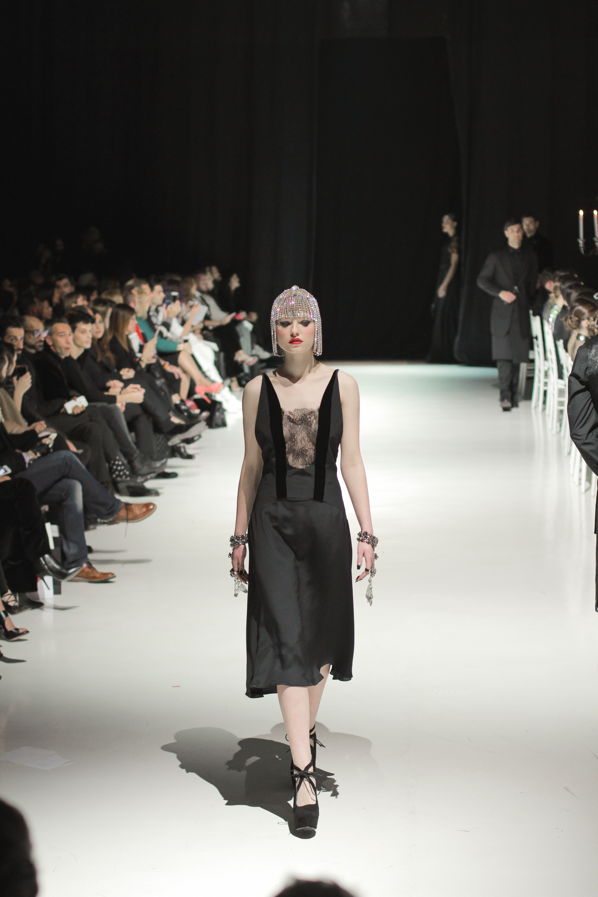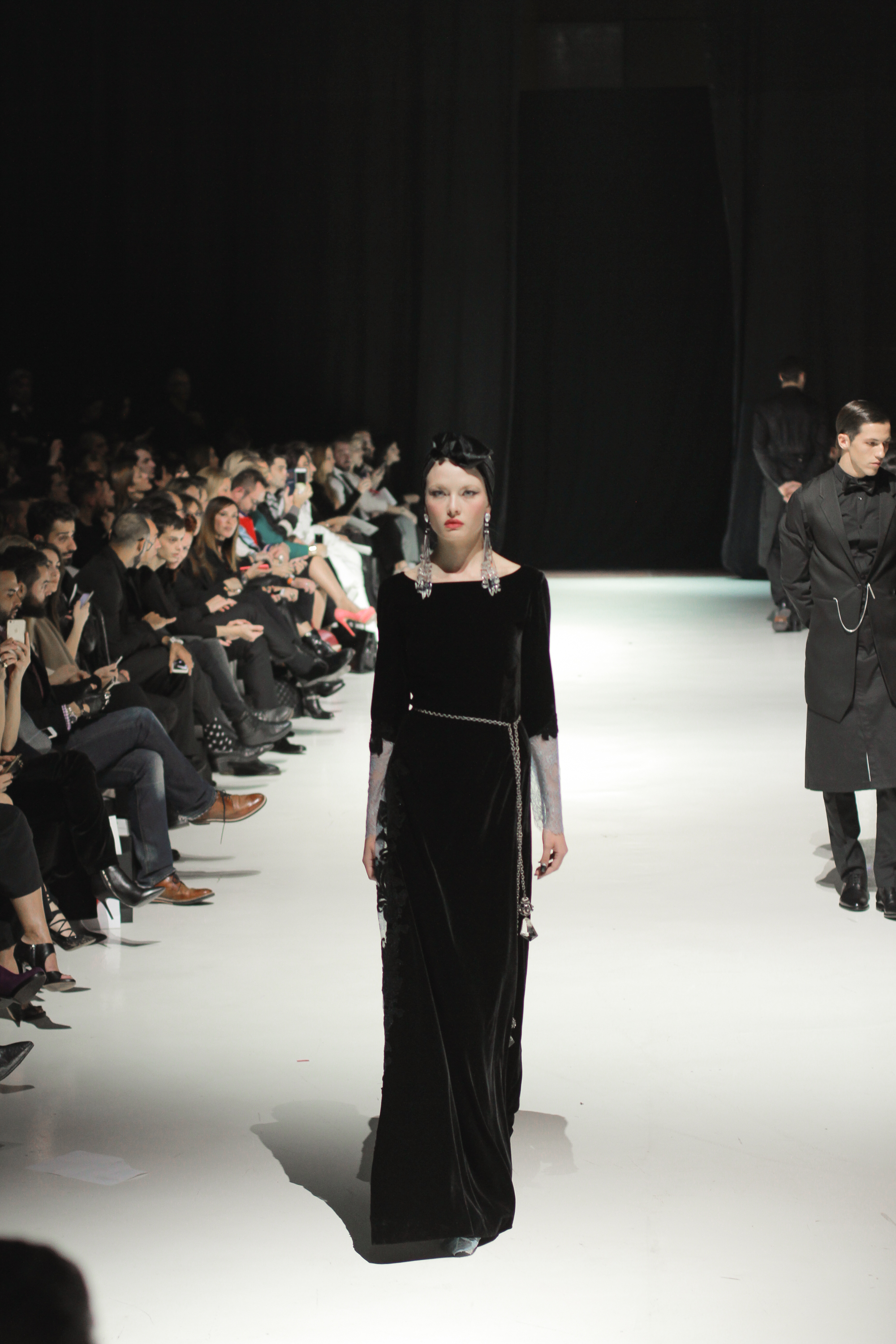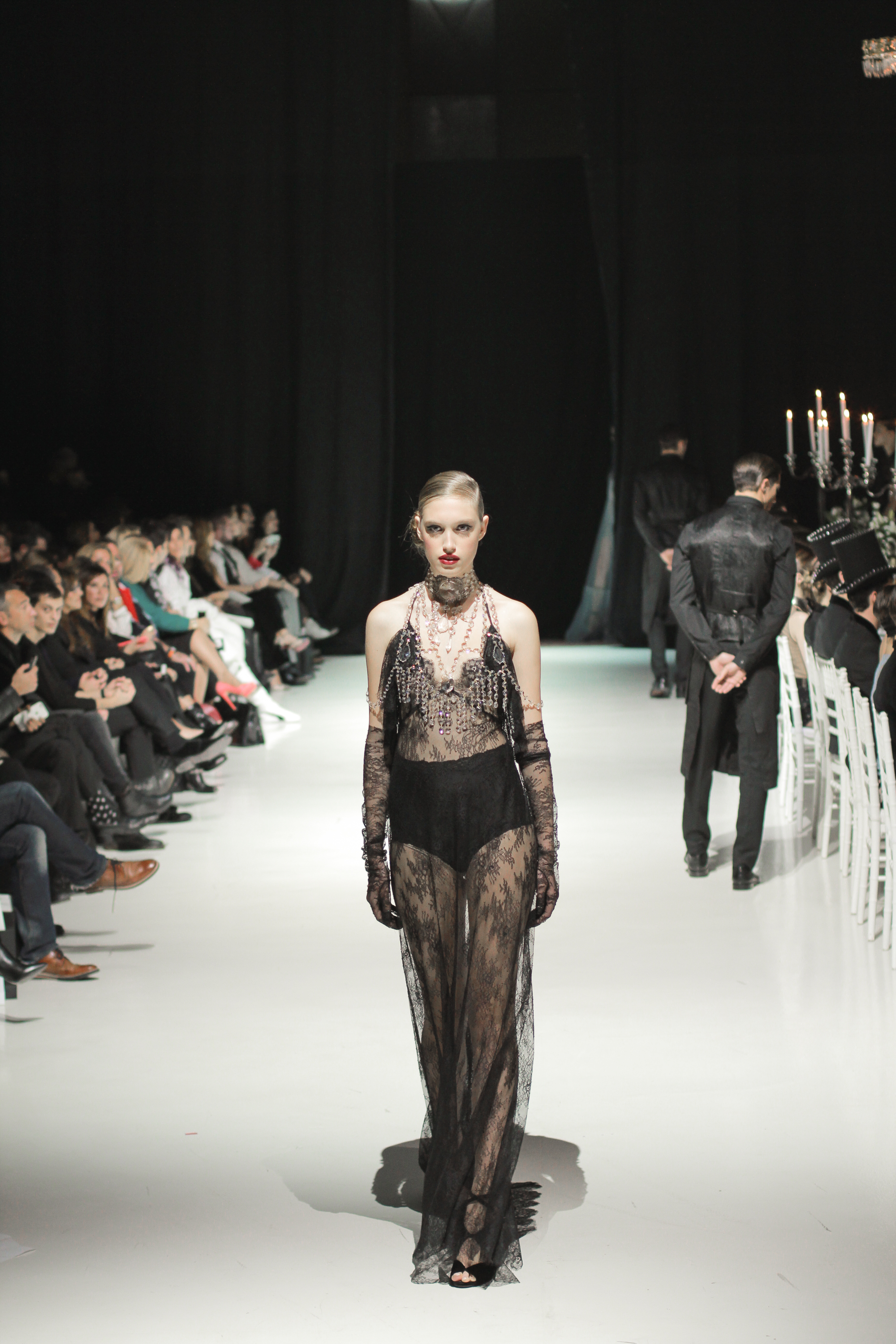 Αφότου κάθισαν όλοι στις θέσεις τους, τα κηροπήγια άναψαν από τους "μπάτλερ"- extras το φώτα έγιναν ψυχρά και εκτυφλωτικά, η μουσική του Rubi Rubi Rubi άρχισε να παίζει και, μπροστά στα μάτια μας, εξελίχθηκε το δείπνο που ο σχεδιαστής οραματίστηκε, με πρωταγωνιστές 49 διαφορετικούς ήρωες των βιβλίων της συγγραφέα- φαινόμενο. Κάθε μοντέλο, ολοκληρώνοντας την διαδρομή του στο catwalk έπαιρνε θέση στο τραπέζι, επισημαίνοντας στο κοινό ότι, στην Couture Affair, ο κάθε χαρακτήρας είναι πρωταγωνιστής και ύποπτος ταυτόχρονα.