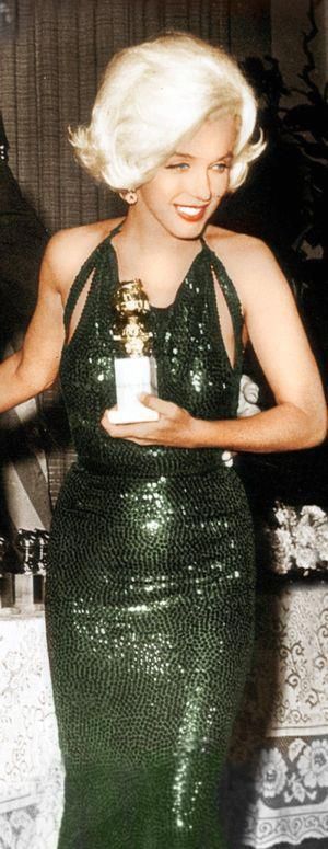 Όταν η Marilyn Monroe έλαβε τη μοναδική Χρυσή Σφαίρα της καριέρας της το 1962, φορούσε ένα σμαραγδί κεντημένο φόρεμα Norman Norell.