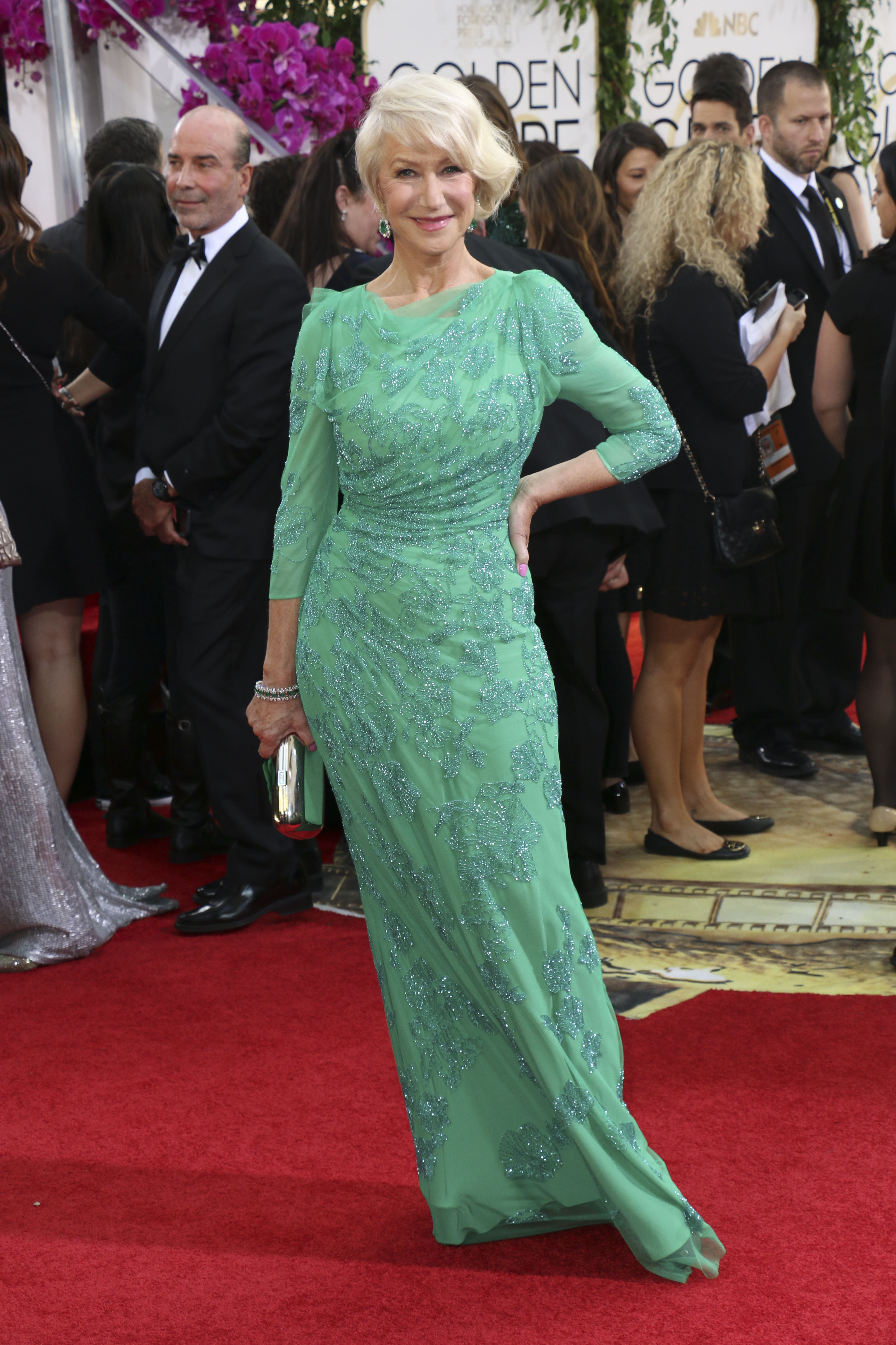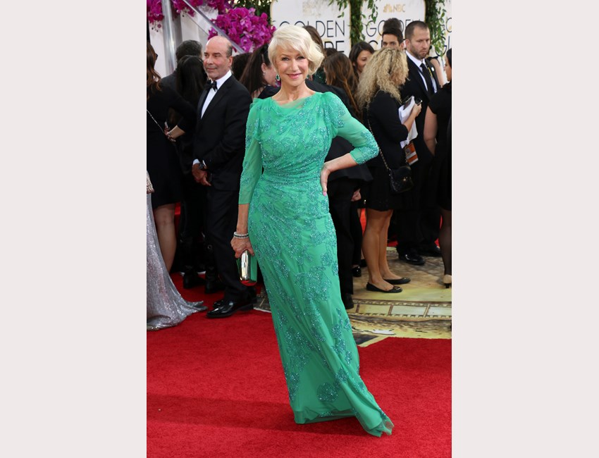 Η Helen Mirren επιβεβαίωσε το 2014 πόσο ταιριάζει το πράσινο στις ξανθιές γυναίκες, με μια υπέροχη κεντημένη τουαλέτα Jenny Packham.