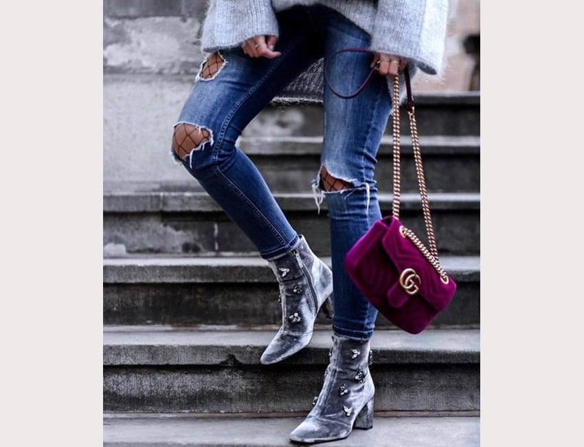 Πρώτα επέστρεψαν τα λευκά, δερμάτινα μποτάκια, που έγιναν ένα από τα πιο hot trends της περασμένης χρονιάς, φέρνοντας αέρα από '60s mod σε κάθε ντύσιμο. Το φετινό χειμώνα έχουν παραμείνει στη μόδα αλλά πλέον συνυπάρχουν με μια νέα άφιξη: τα βελούδινα μποτάκια (velvet booties) σε έντονα και ιδιαίτερα χρώματα όπως το μπλε η]ελεκτρίκ, το σάπιο μήλο και το καφέ του κάστανου. Το σχήμα καλύπτει το ένα τρίτο της γάμπας και το τακούνι παραμένει χοντρό και σταθερό.