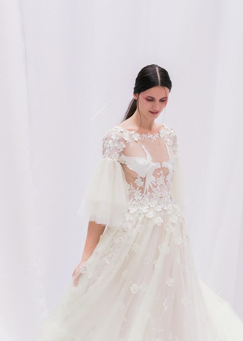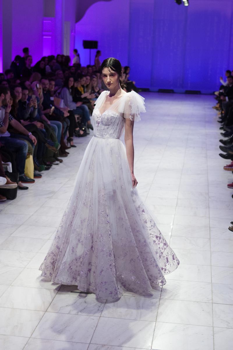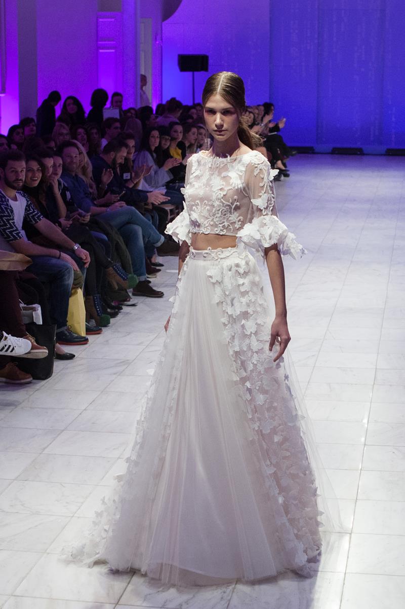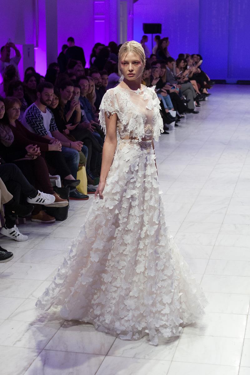 Τα ανάλαφρα υφάσματα και οι αθώες παστέλ αποχρώσεις που θυμίζουν τα εφηβικά μας χρόνια, έρχονται σε αντίθεση –αλλά και σε πλήρη αρμονία- με το δυναμισμό της δαντέλας και την ένταση που δίνουν οι απλικέ πεταλούδες, τα πουλιά και η λάμψη των ημιπολύτιμων κρυστάλλων.