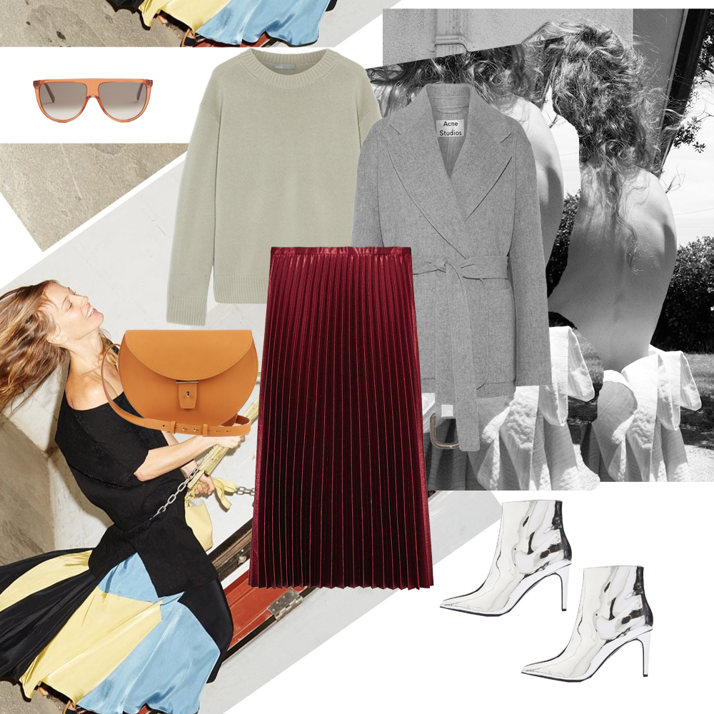 Παλτό Acne Studios, NET-A-PORTER.COM. Πουλόβερ Vince, NET-A-PORTER.COM. Πλισέ φούστα ZARA. Τσάντα Pb 0110, MATCHESFASHION.COM. Ankle boots Topshop, TOPSHOP.COM. Γυαλιά ηλίου Celine, MATCHESFASHION.COM.