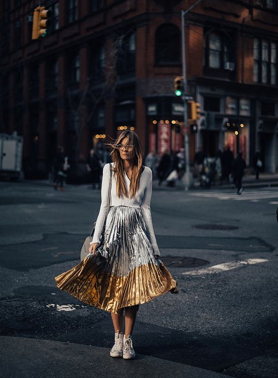 Τόλμησέ το σε μια κλος φούστα με πιέτες, ένα κοστούμι, ένα φόρεμα, bomber jacket ή statement παπούτσια.