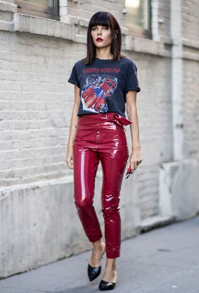 Ένα από τα αγαπημένα κομμάτια της κάθε fashionista είναι το μαύρο παντελόνι σε δερμάτινη ή βινύλ υφή. Συνδυάζεται με όλα, δίνει μια edgy πινελιά ακόμη και στο πιο casual look και φοριέται από το πρωί έως το βράδυ.