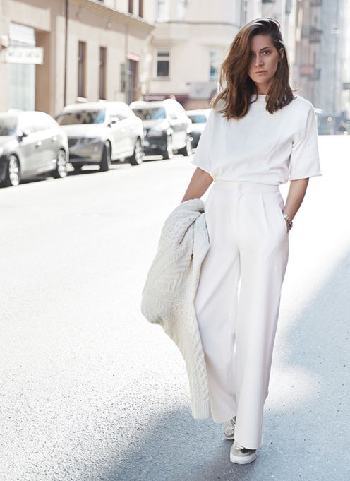 Είναι καλό τα επιμέρους κομμάτια του outfit να έχουν την ίδια απόχρωση ώστε να μην μπερδεύεις το λευκό του πάγου με το κρεμ και το λευκό της βανίλιας σε μια εμφάνιση. Παράλληλα, αξίζει να δοκιμάσεις τολμηρά, statement κομμάτια που σε ένα μονόχρωμο λευκό ντύσιμο "χάνουν" τον edgy χαρακτήρα τους και ισορροπούν με τα υπόλοιπα, ενώ μπορείς να "σπάσεις" τη μονοχρωμία με κάποιο αξεσουάρ σε ενδιαφέρουσα απόχρωση.